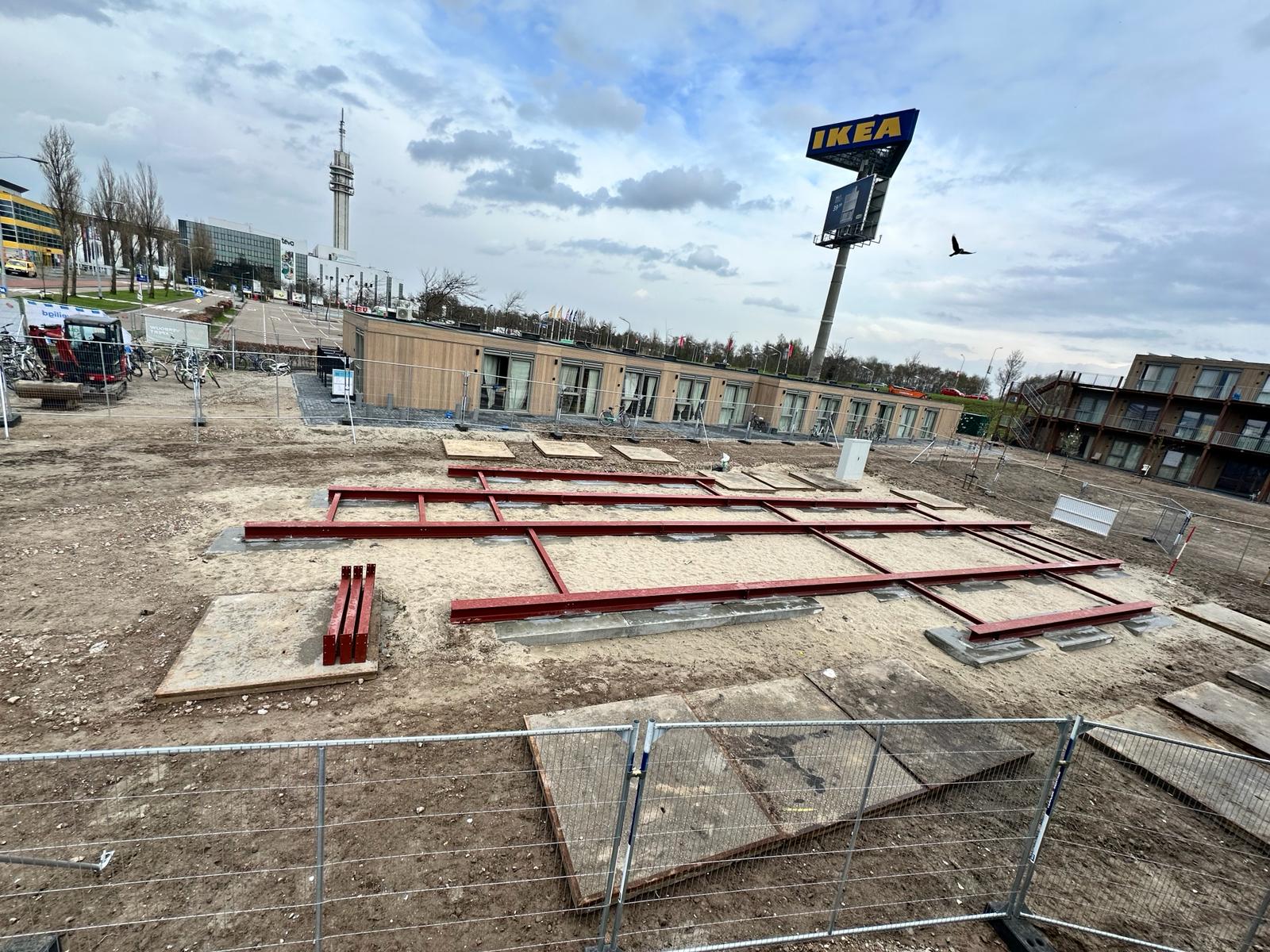 Staalconstructie voor de te realiseren zogenaamde Circulaire Huiskamer voor het asielzoekerscentrum in Haarlem.
