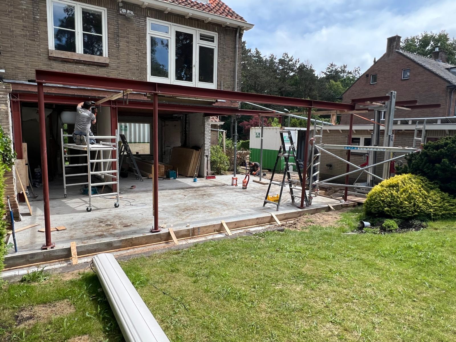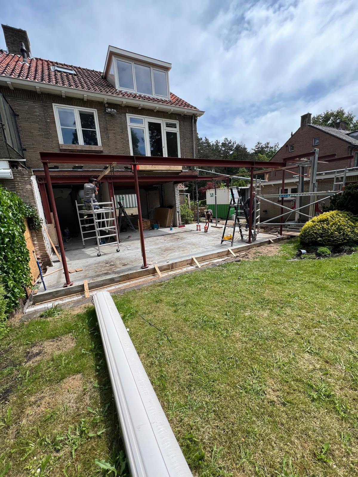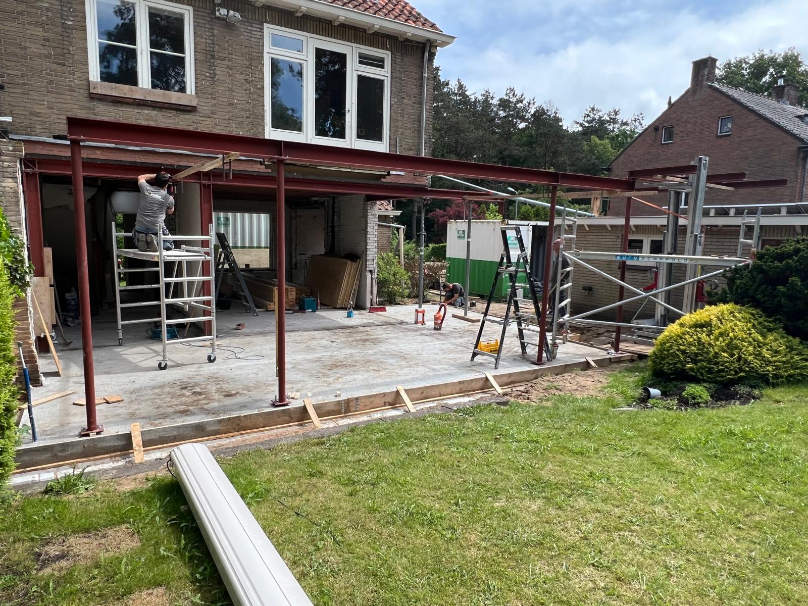 Staalconstructie voor aanbouw van een hoekhuis inclusief stempelwerk