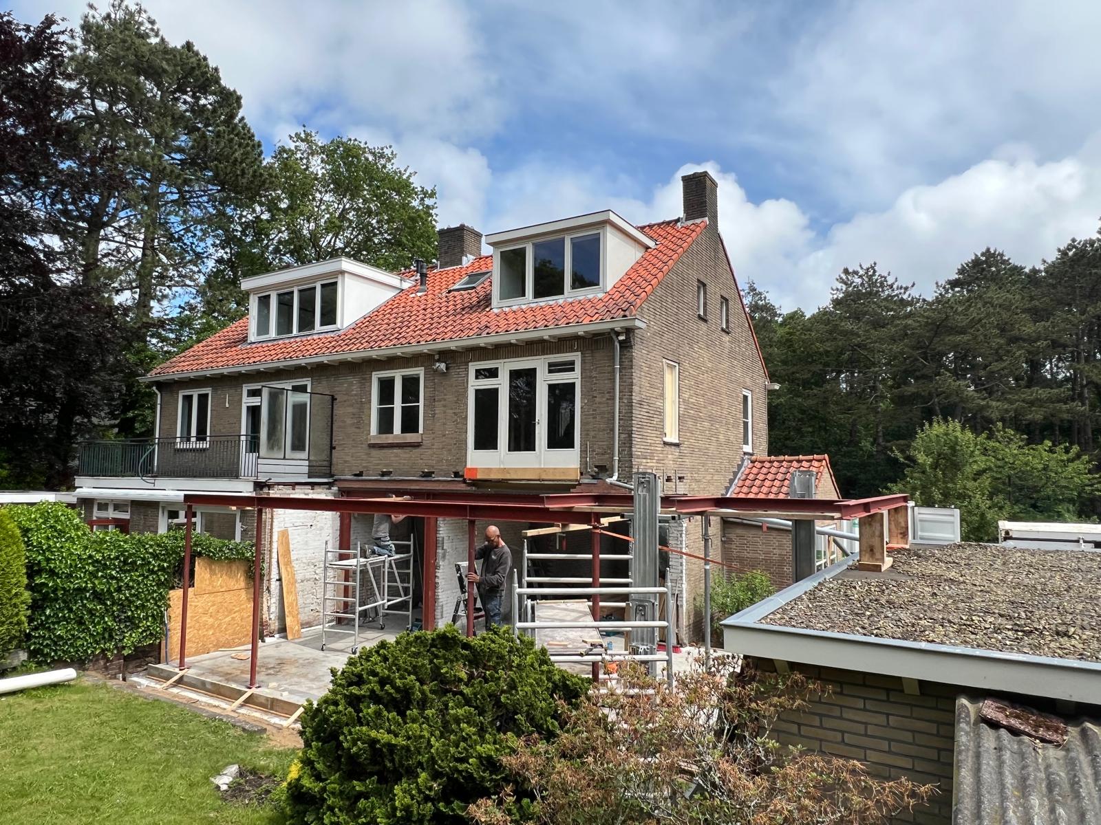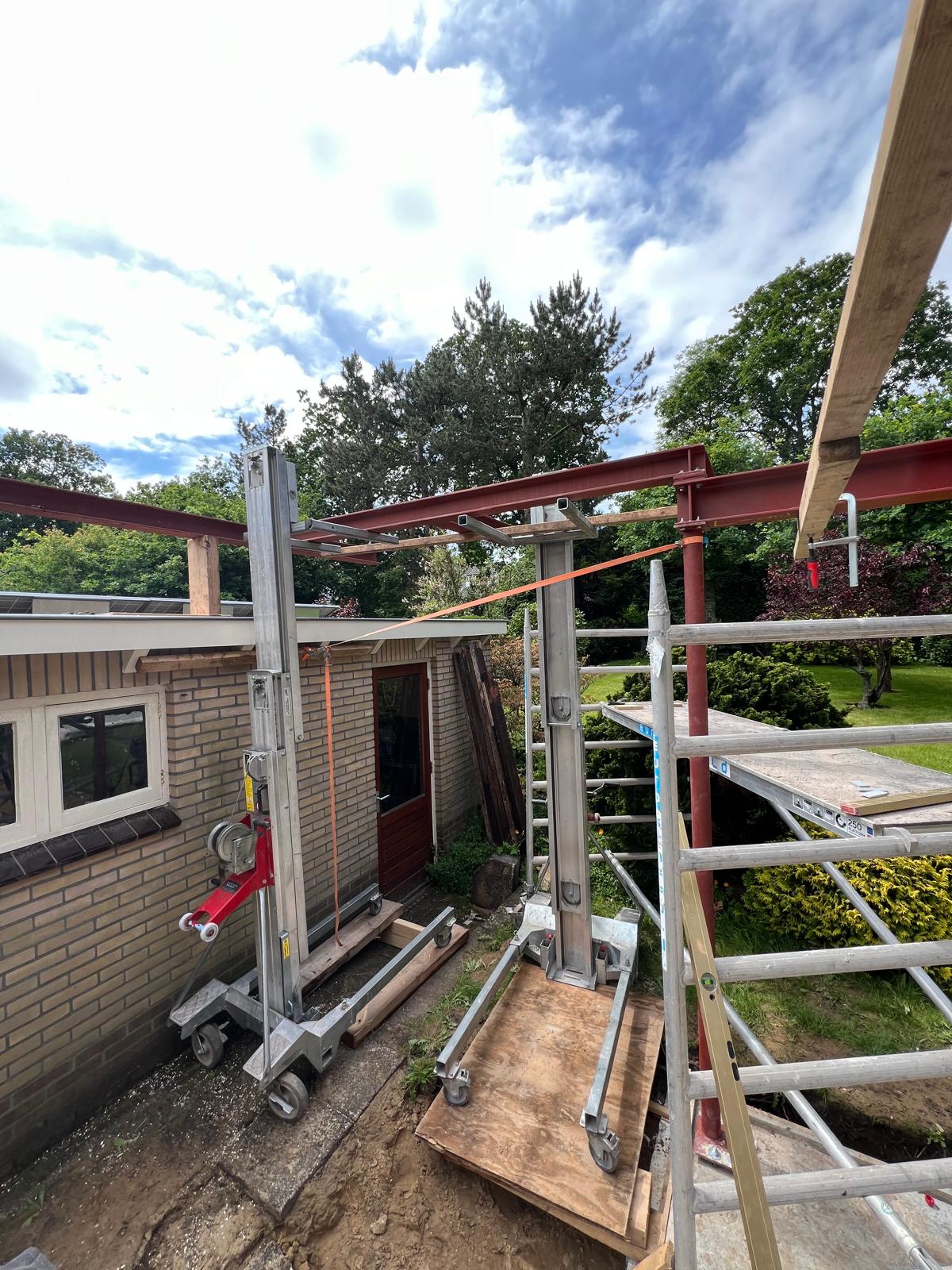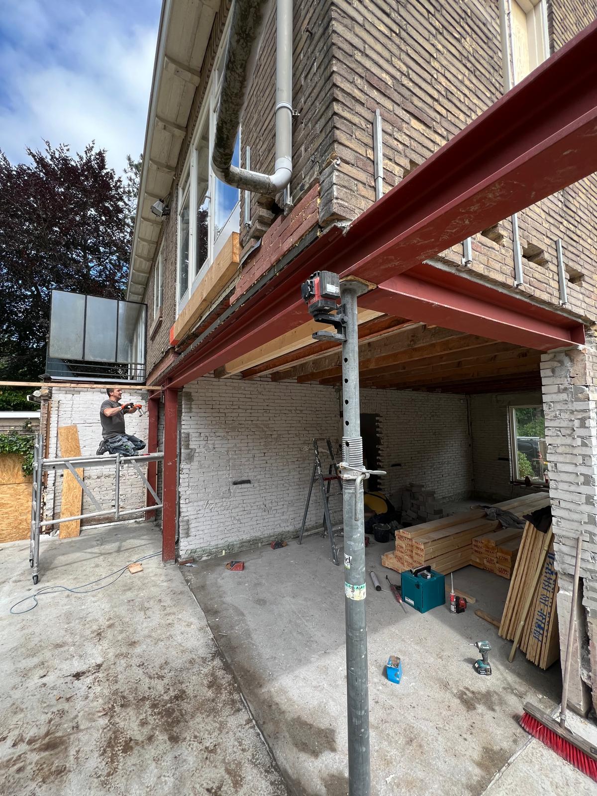 Staalconstructie voor aanbouw van een hoekhuis inclusief stempelwerk
